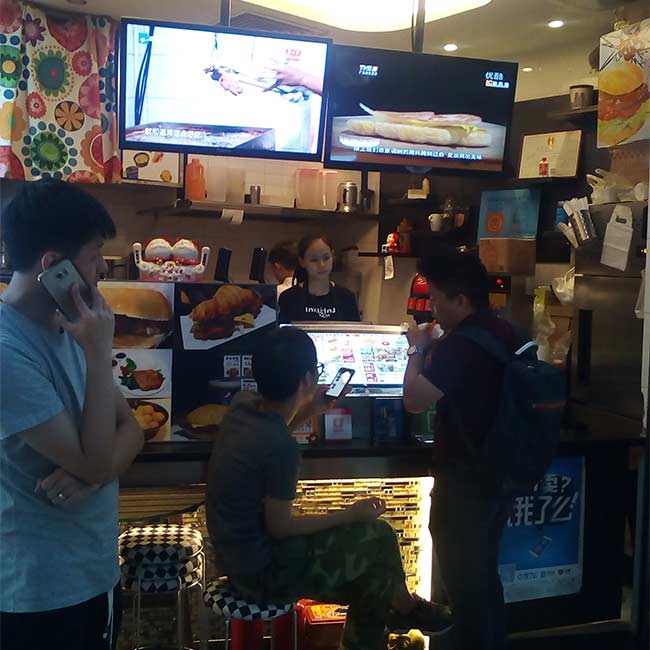 这些年,数字标牌被用于餐饮业,不少的餐饮组织依托数字标牌的重大效果逐步锋芒毕露,抢占市场先机。在餐饮业中,数字标牌的主要效果即是用一体机的方式,将巨大的数据信息,视觉化的呈如今大家眼前。接触式的一体数字标牌机愈加能够完成和消费者的互动。比如,大家在饭馆酒楼等待时,能够赏识数字标牌上播映的广告、新闻、公益视频之类的,还能够看到排队人数和序号显现;大家想要取得基本的优惠信息,也能够经过接触和数字标牌一体机完成人机互动,取得丰富的优惠信息;数字标牌还能够形象化展现饮食的视觉化效果,招引更多的消费者。