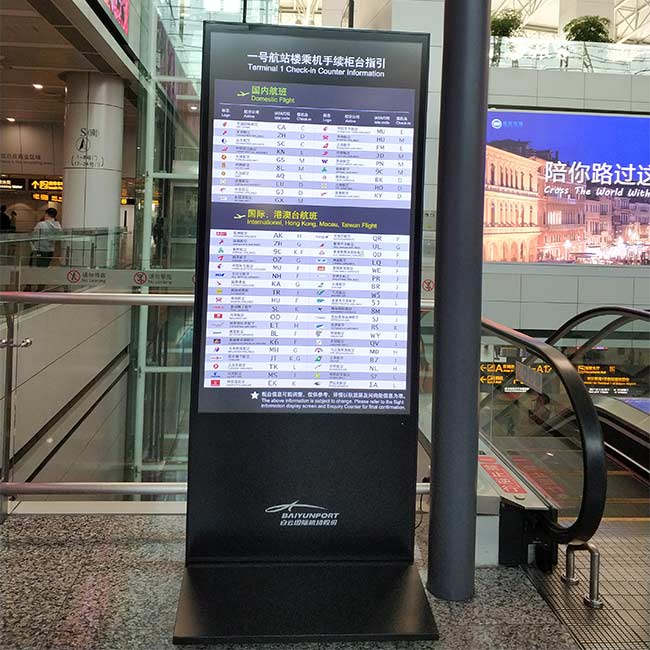 在实际操作中,一旦极端气候呈现,乘客的咨询、改签、退票等行动会集中迸发,给服务台形成很大的压力,不利于机场次序的保护。经过数字标牌体系的构建,乘客就能够凭借相应的信息引导体系,经过接触查询轻松获取有关信息或完结简略的操作,从而有用减轻窗口压力,提高机场服务质量。