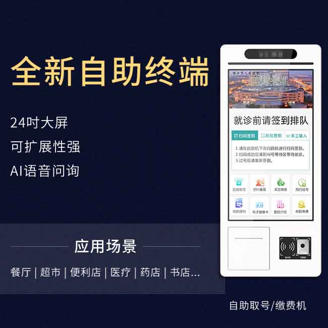 医院用自助终端机对于患者来说,不仅能节省时间,提高效率,省去挂号,缴费,等报告的麻烦,同时对于医院来说,有效舒缓人流量,也为挂号窗口减轻了压力,提高医院运作效率,保障医院高效有序运行,提升医院形象。